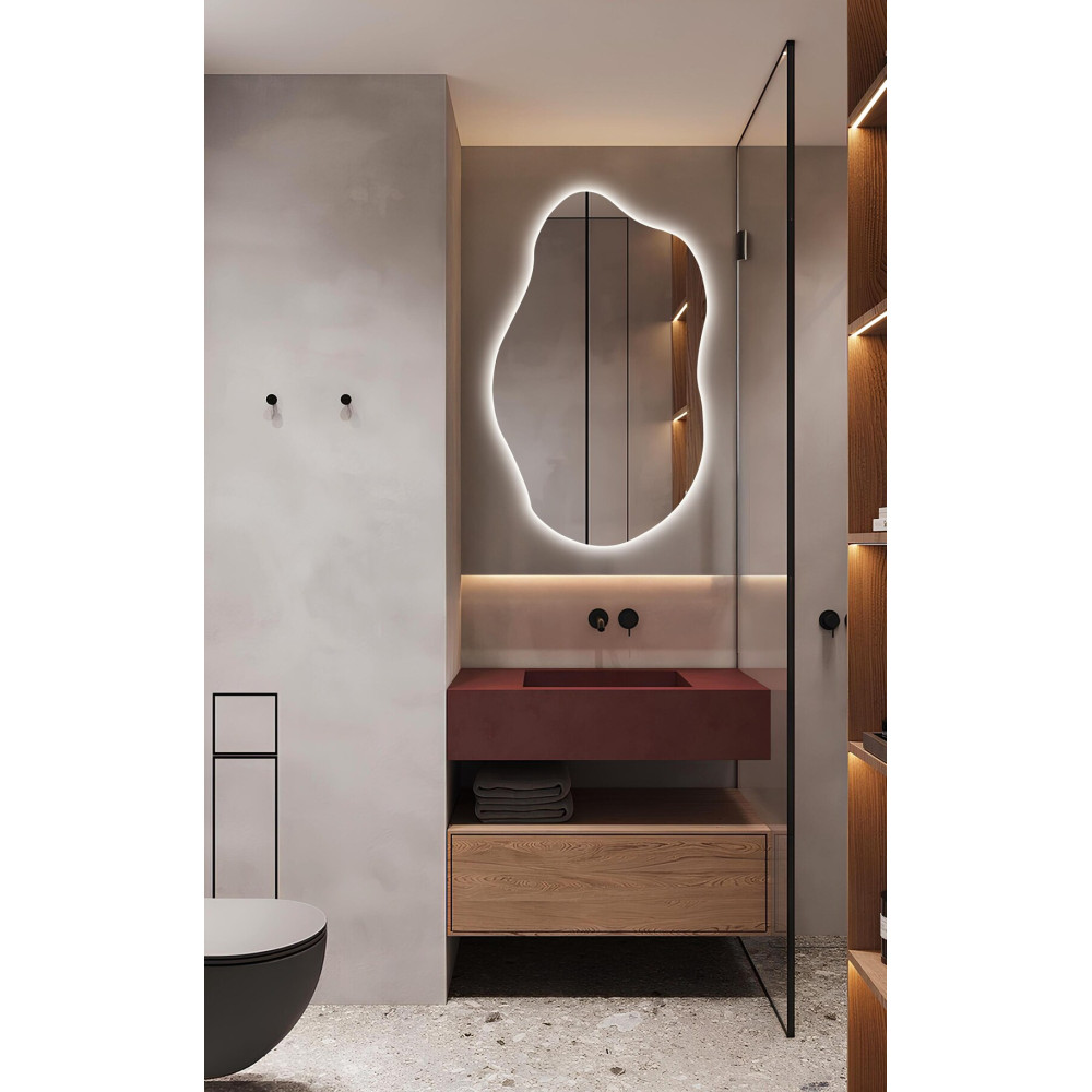 Встроенная светодиодная подсветка формирует мягкое свечение по контуру, подчёркивая форму облака и визуально «парящее» ощущение. Такой свет создаёт уютную атмосферу в комнате, идеально подходит для вечернего освещения и превращает зеркало в стильный арт-объект.