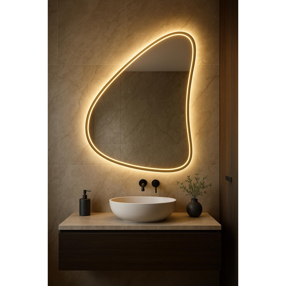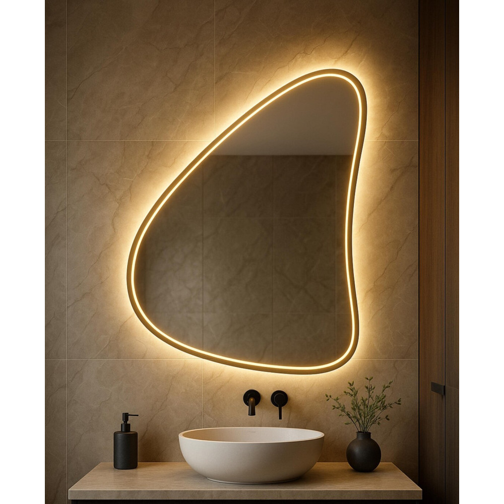 Зеркало «Форли 003» сочетает эффектный дизайнерский силуэт в форме капли и двойную систему освещения, создавая одновременно функциональный и декоративный элемент интерьера. Его плавные линии делают зеркало выразительным, мягким и визуально обтекаемым — идеальным акцентом для современных пространств.