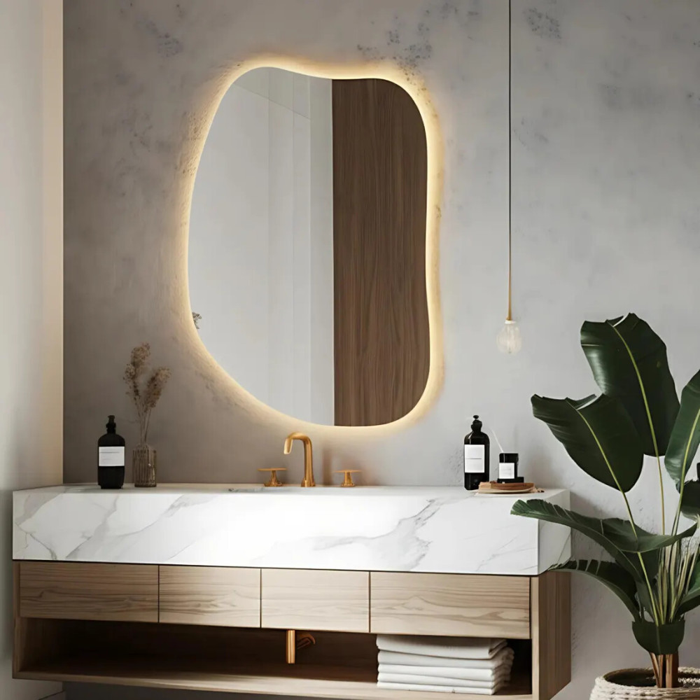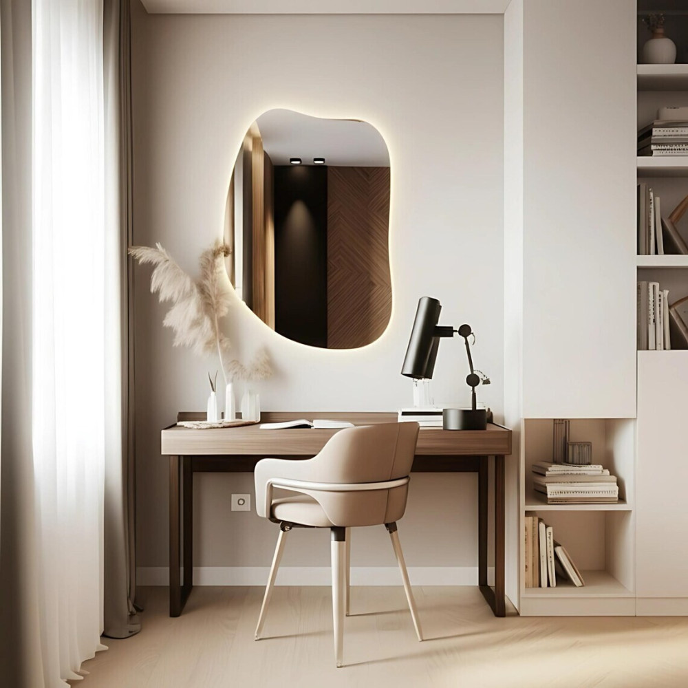 Зеркало TH002 — это современный декоративный акцент, созданный для интерьеров, где ценят оригинальные линии, мягкую геометрию и атмосферный свет. Его нестандартная асимметричная форма делает зеркало выразительным арт-объектом, который моментально привлекает внимание и оживляет пространство.