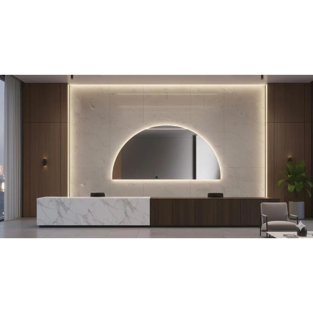 Зеркало TH006 — полукруглое зеркало с задней эмбилайт подсветкой
