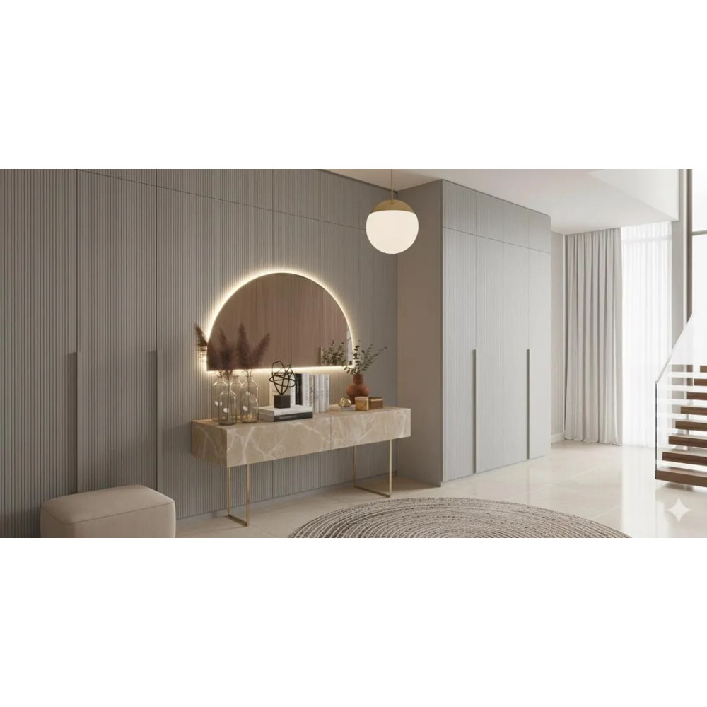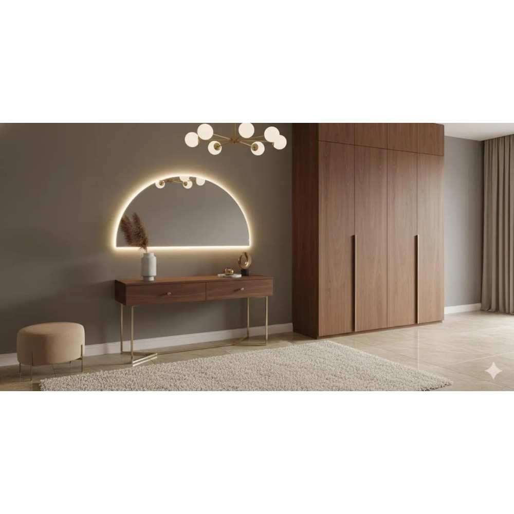 Зеркало TH006 — это современный дизайнерский акцент, сочетающий лаконичную полукруглую форму и эффектную контурную LED-подсветку. Чистая геометрия делает модель визуально лёгкой и архитектурно выразительной, а мягкое свечение подчёркивает форму и создаёт эффект «парящего» зеркала на стене.