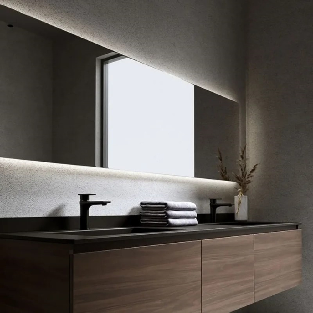 Для профессионального макияжа рекомендуем использовать зеркала с лампочками или зеркала с фронтальными пескоструйными световыми полосами с усиленной яркостью, нейтральным дневным светом и закрытым свечением(сзади зеркала свет не падает на стену).
