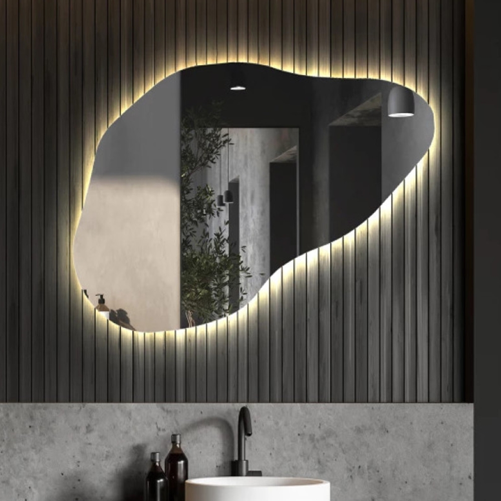 Парящее ассиметричное зеркало с задней эмбилайт подсветкой, модель Уэстон.