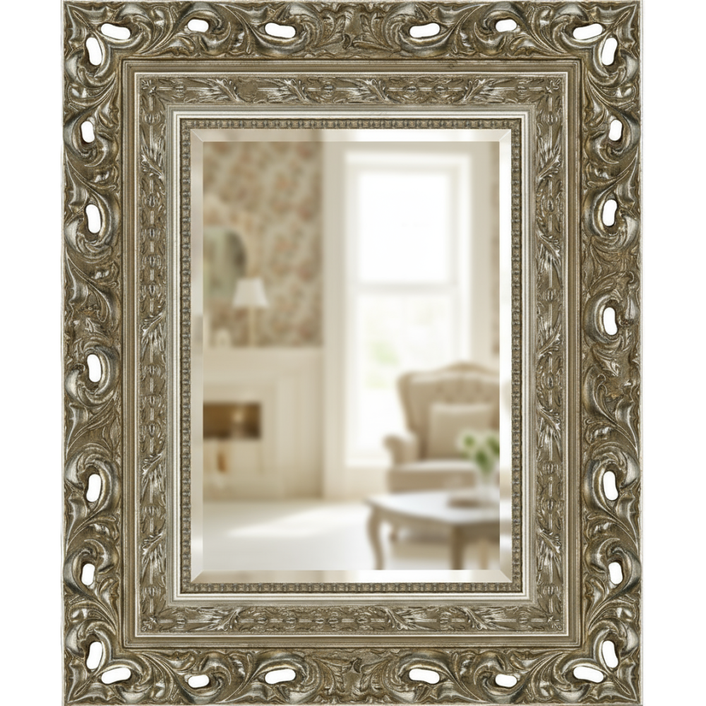 Зеркало с фацетом в серебряной багетной декоративной раме Маргарита 004