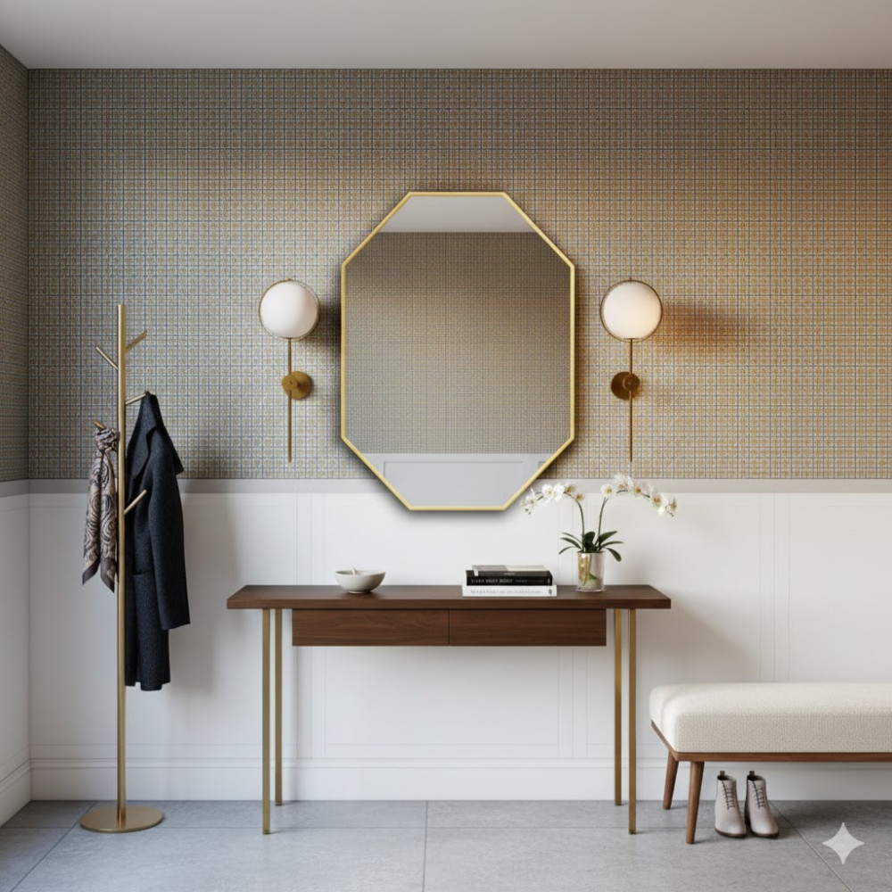 Зеркало «Голд Спаркл» — это воплощение роскоши и изысканности, созданное для тех, кто ценит благородные материалы и безупречный стиль. Изящная восьмиугольная форма в обрамлении роскошной золотой рамы станет центральным элементом вашего интерьера.