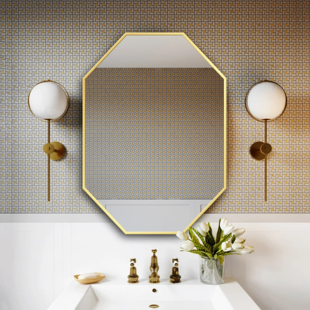 Восьмиугольное зеркало «Голд Спаркл» в золотой раме из МДФ