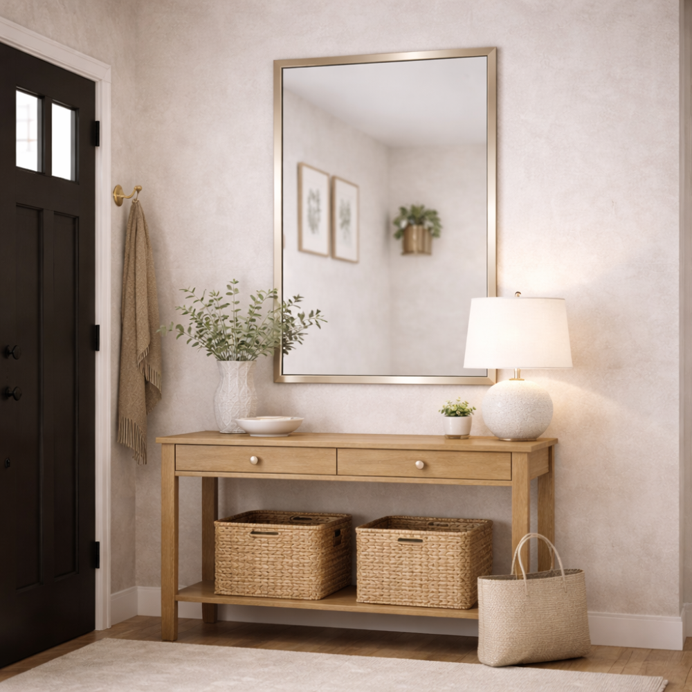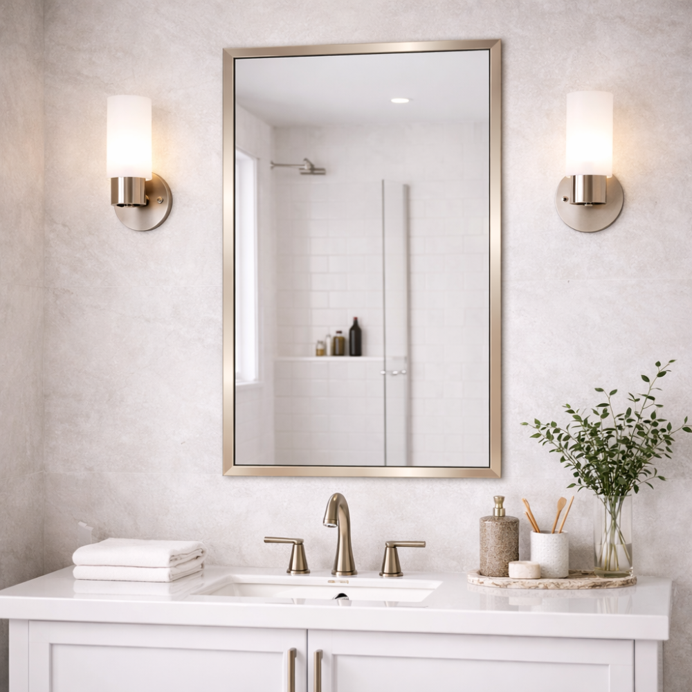 Универсальность применения. Подходит для ванных комнат, прихожих, спален и гостиных — визуально расширяет пространство и добавляет света.