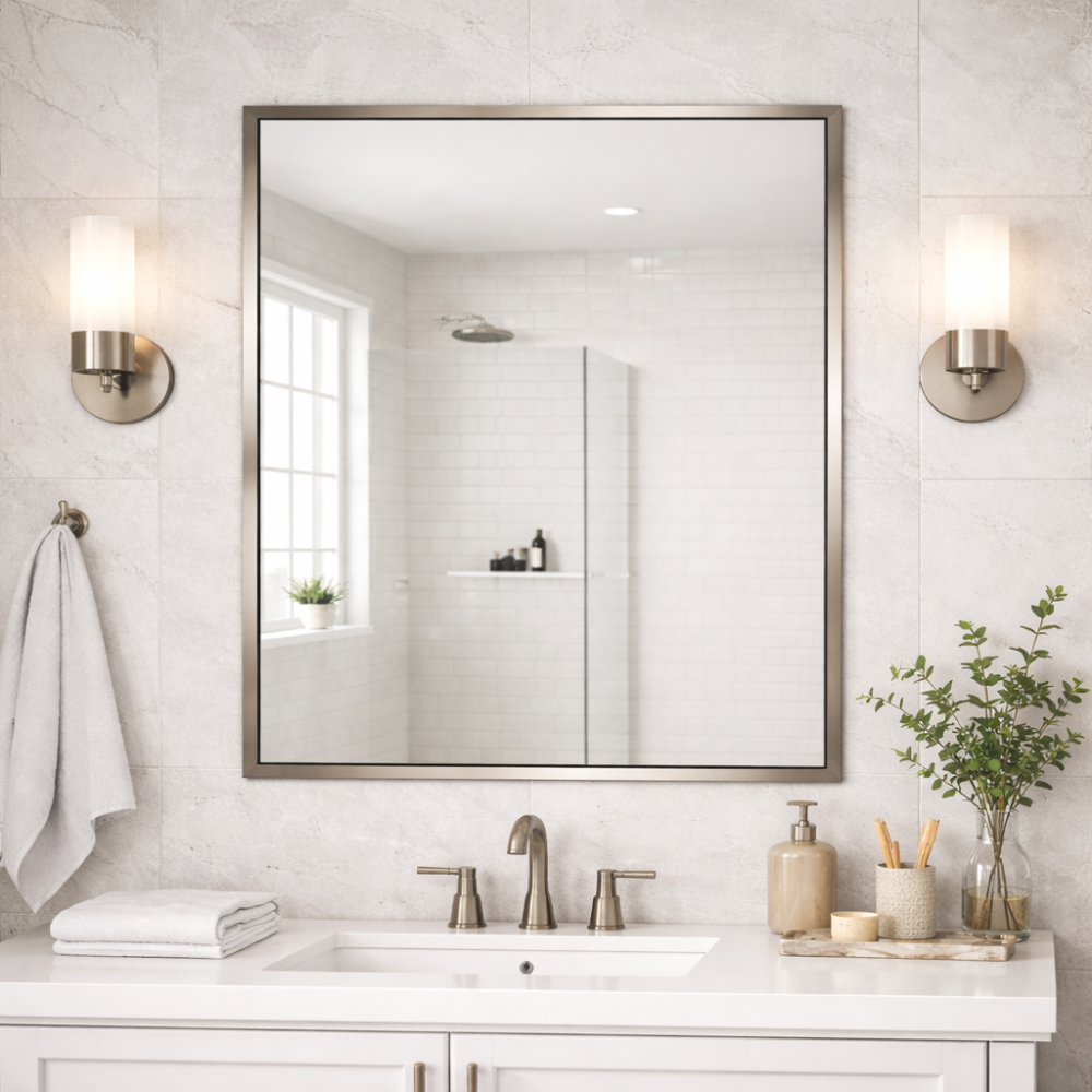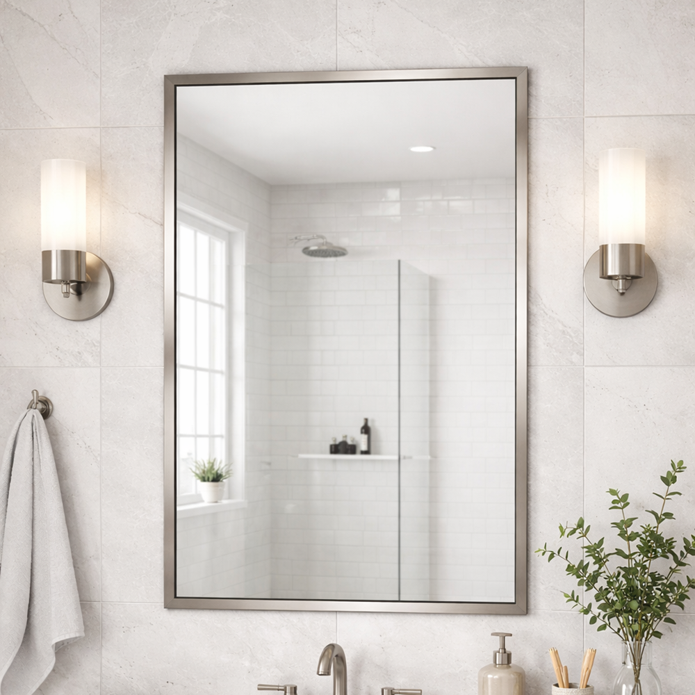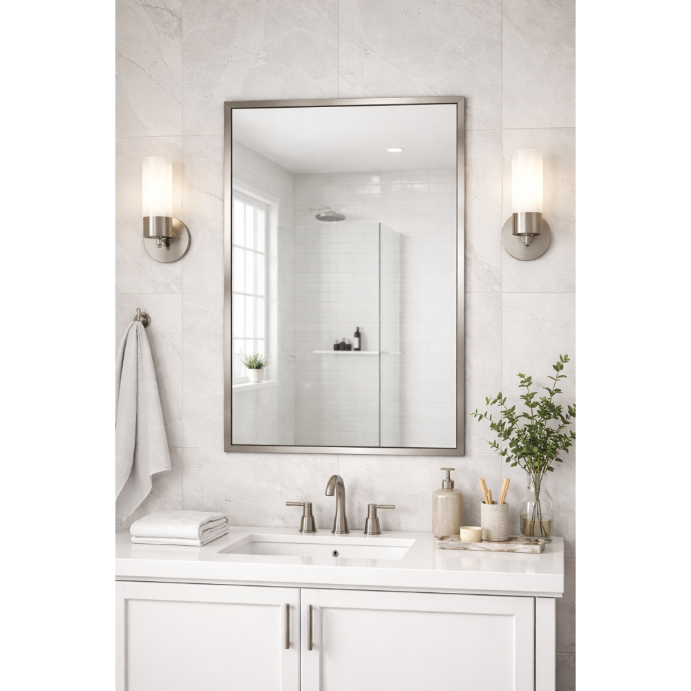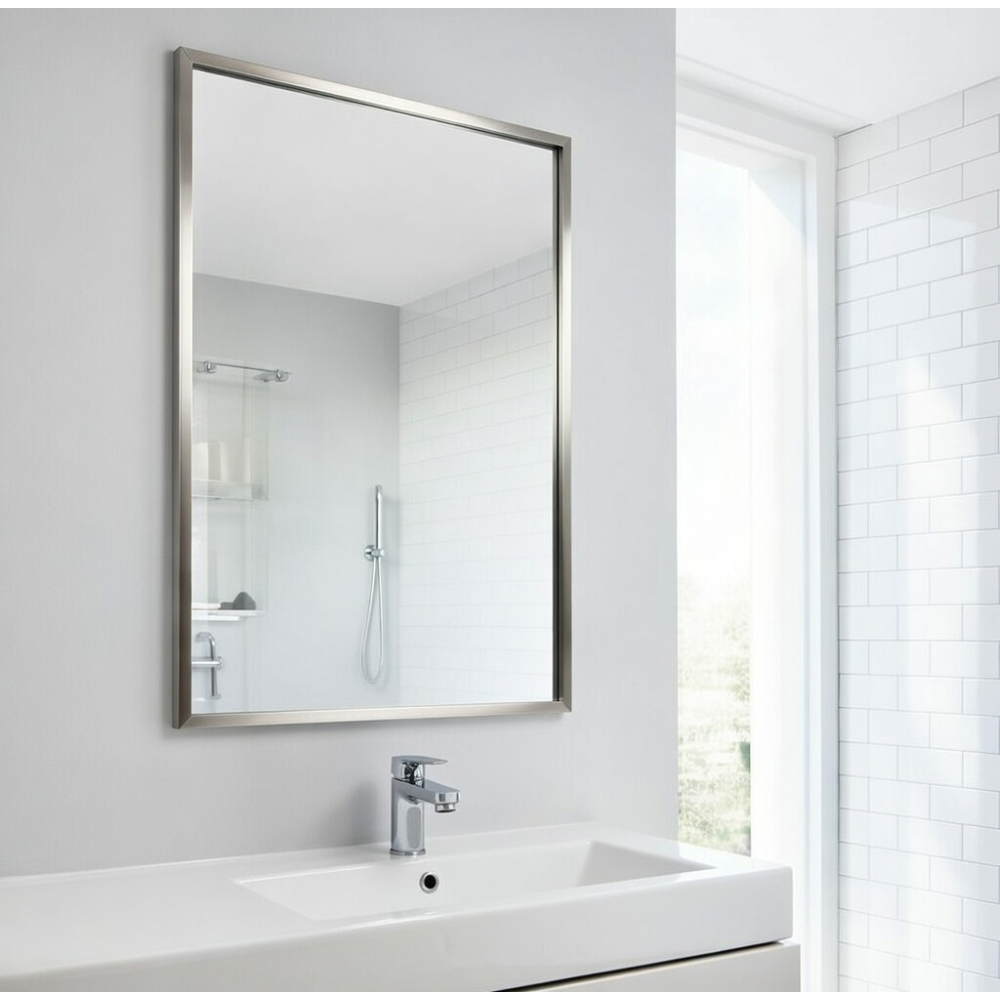 Прямоугольное настенное зеркало в алюминиевой раме цвета «Никель» (модель RF001)