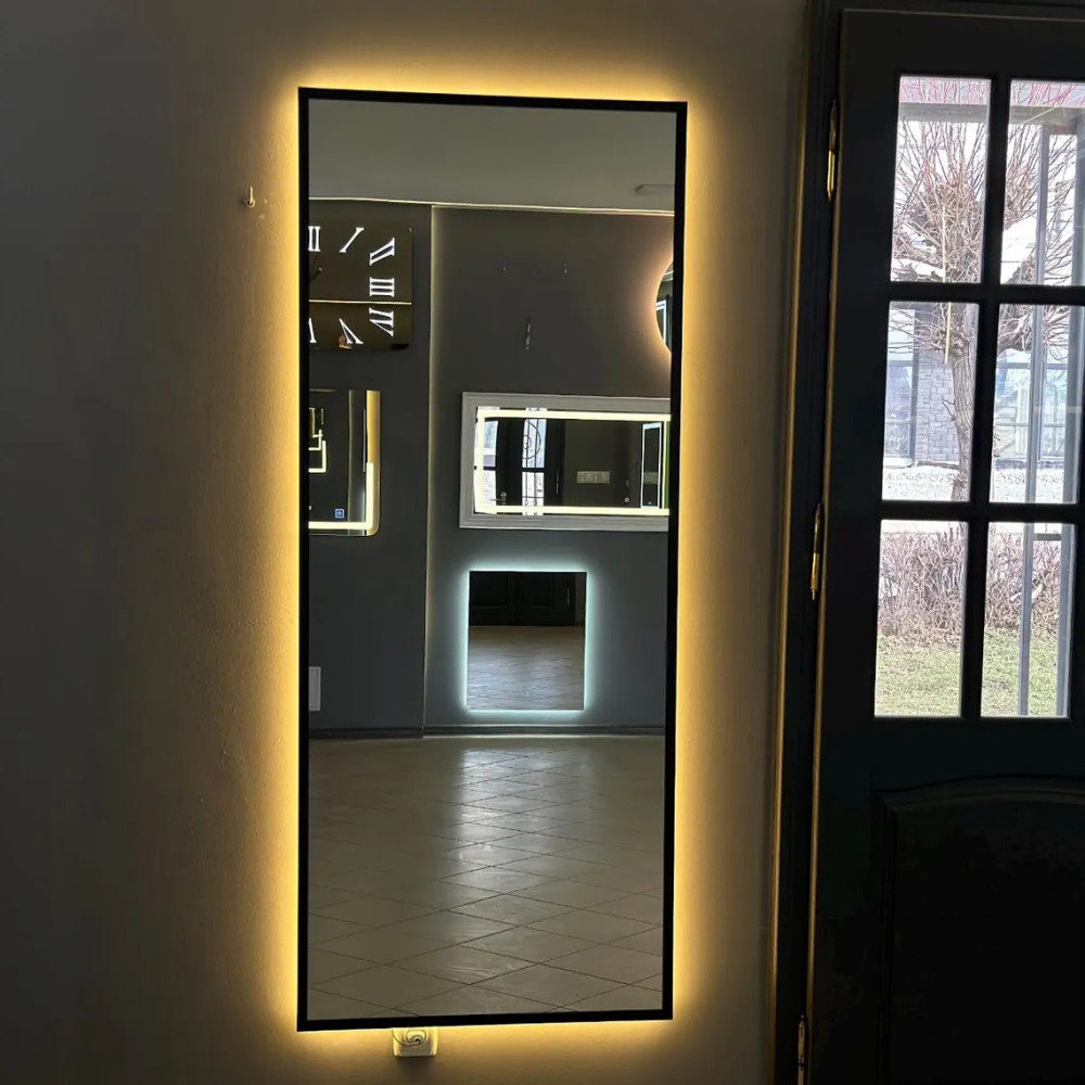 Зеркало в полный рост чёрной металлической раме с задней контурной подсветкой Рэфорд 9