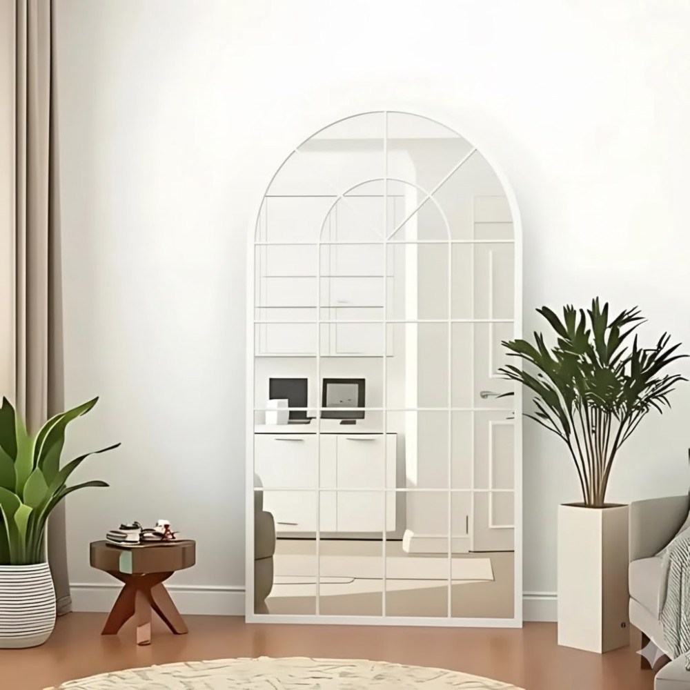 Зеркало-окно в форме арки большое напольное и настенное в полный рост в белой раме Антика