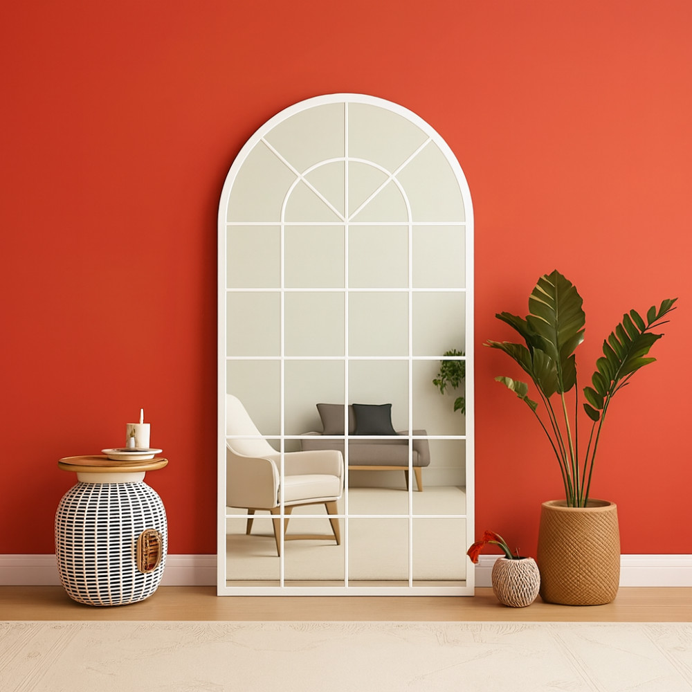 Арочное зеркало-окно «Антика» — большое напольное и настенное зеркало в полный рост в белой раме из МДФ