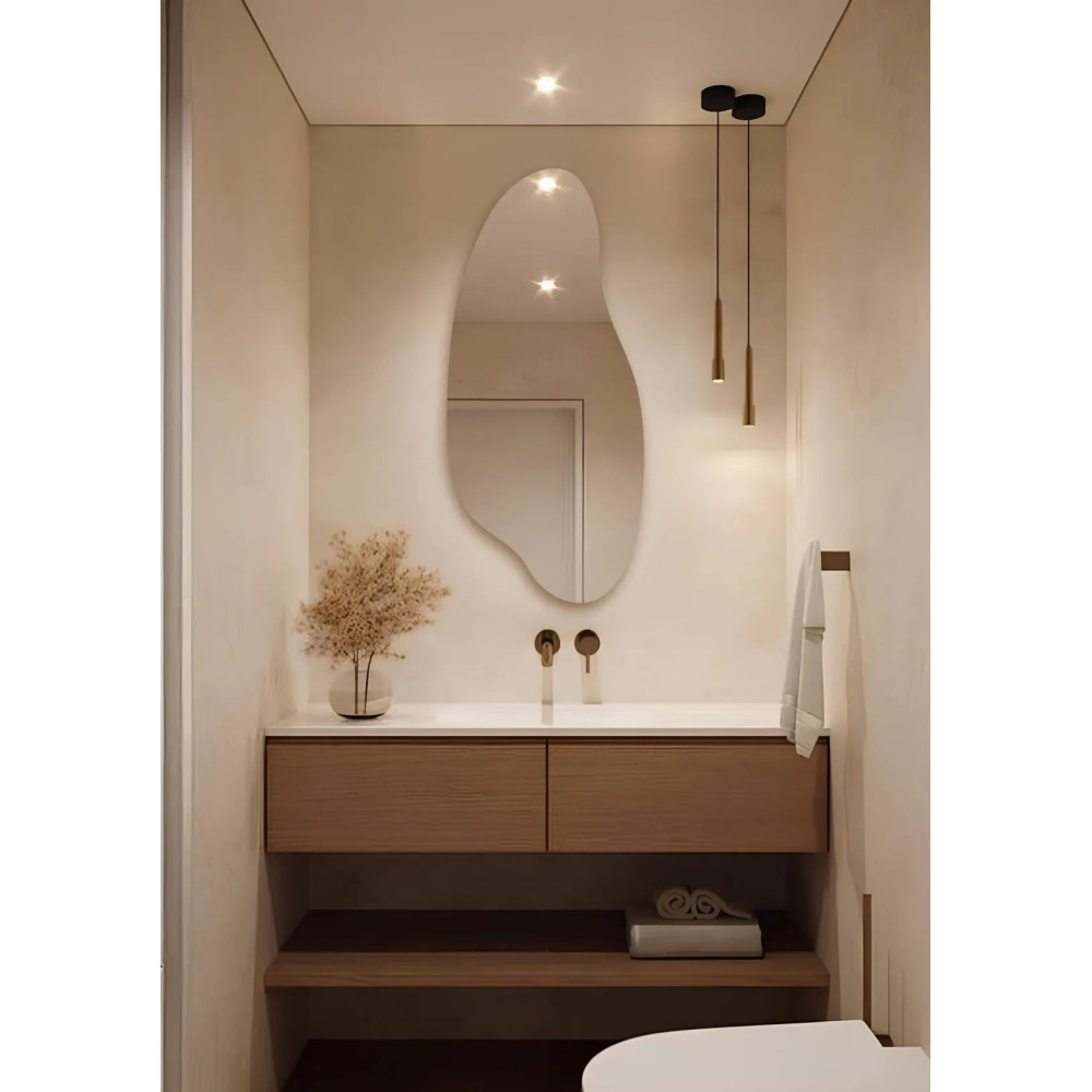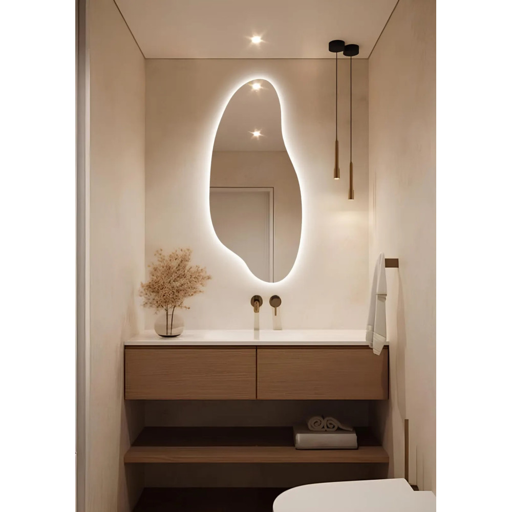Зеркало «Богемия» — это эффектный дизайнерский элемент, созданный для тех, кто ценит уникальные формы и атмосферный свет. Благодаря нестандартному силуэту и мягкой задней подсветке зеркало превращается в современный арт-объект, который мгновенно привлекает внимание и делает интерьер более выразительным.