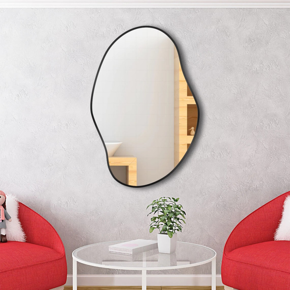 Чёрная рама из прочного МДФ подчёркивает графичность и контраст, делая зеркало универсальным для интерьеров в стилях минимализм, лофт, модерн, контемпорари и эклектика. Такой насыщенный тёмный оттенок добавляет интерьеру выразительности и делает зеркало центральным декоративным элементом.
