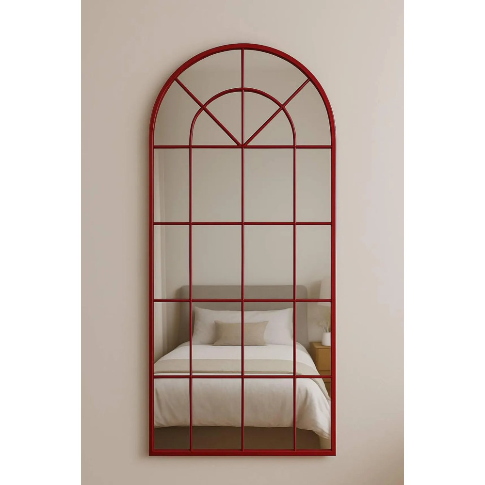 Зеркало-окно «Антика» — большое арочное напольное и настенное зеркало в полный рост в красной раме