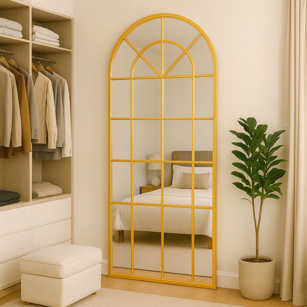 Зеркало-окно «Антика» — большое арочное напольное и настенное зеркало в полный рост в золотой раме