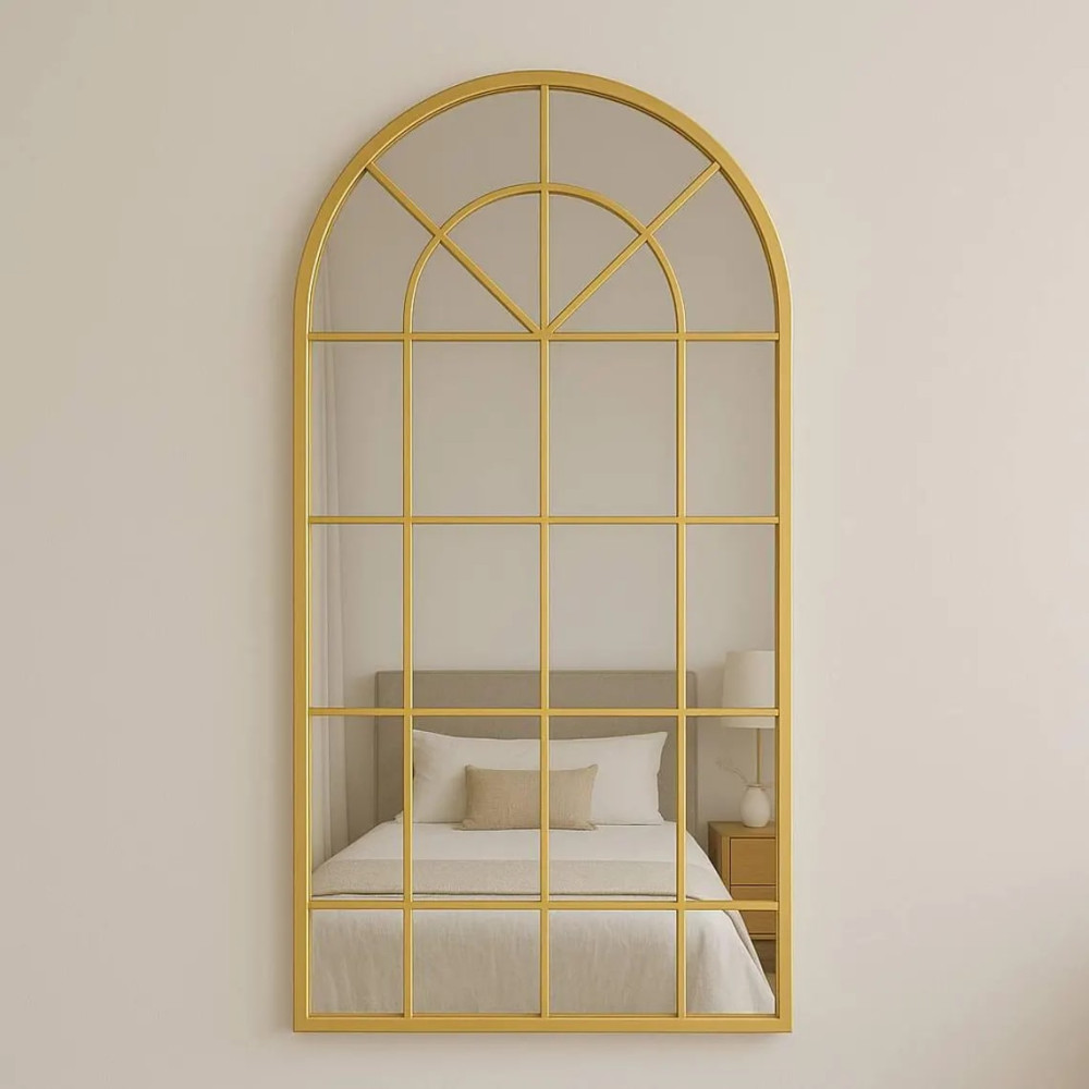 Зеркало-окно в форме арки большое напольное и настенное в полный рост в золотой раме Антика