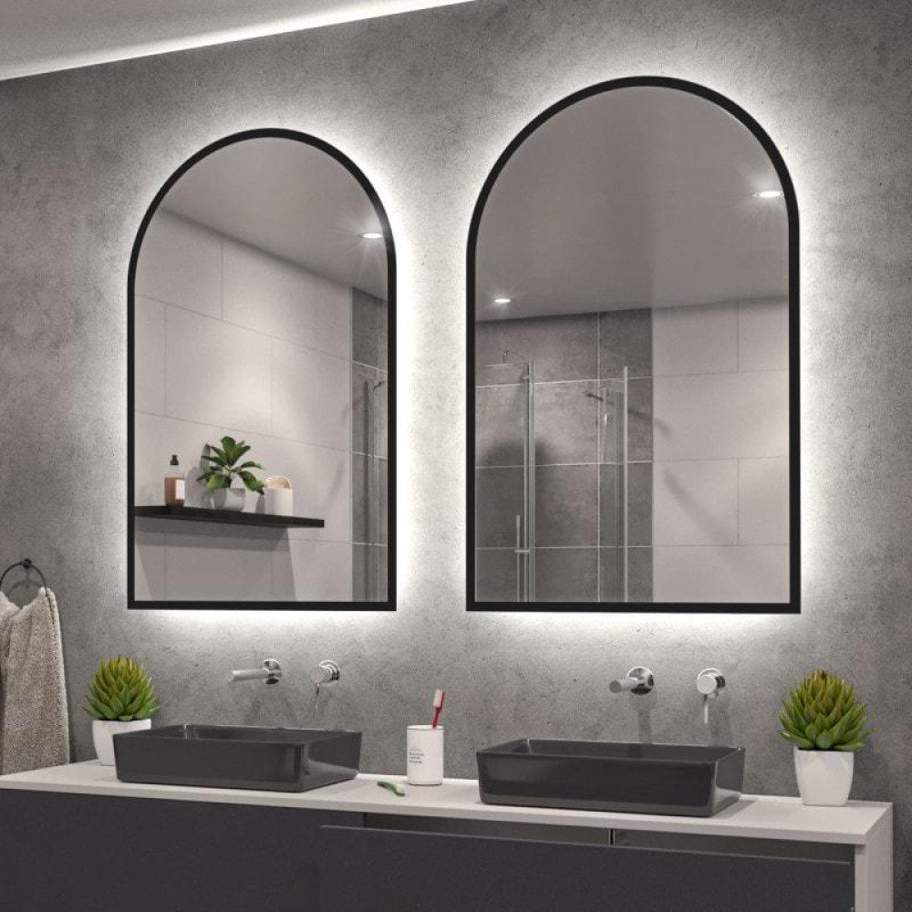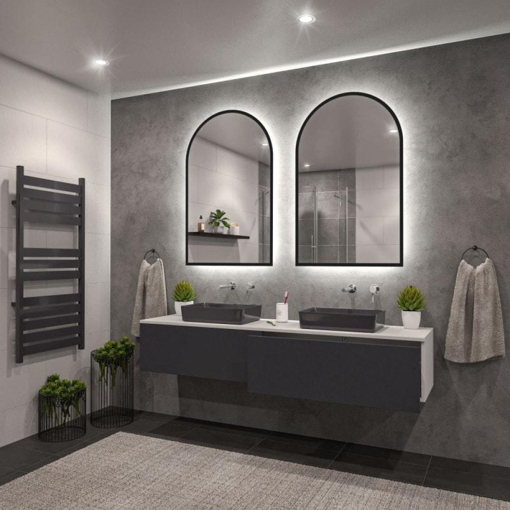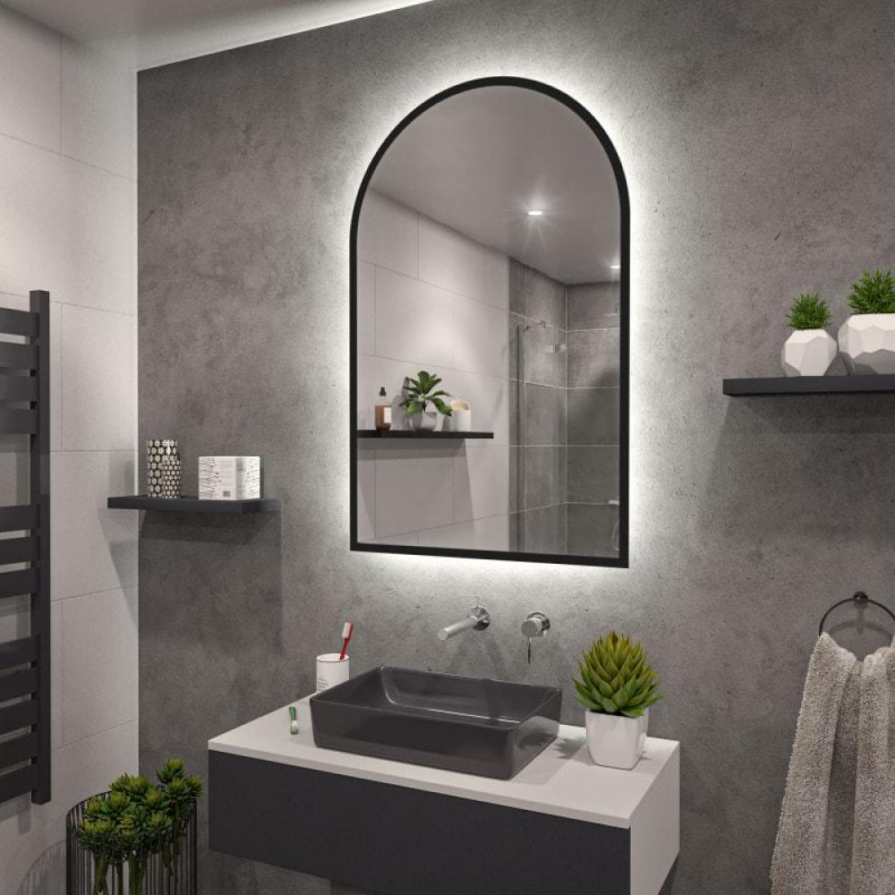 Зеркало «Астерия 010» — зеркало арочной формы в чёрной раме из МДФ с тыльной парящей подсветкой