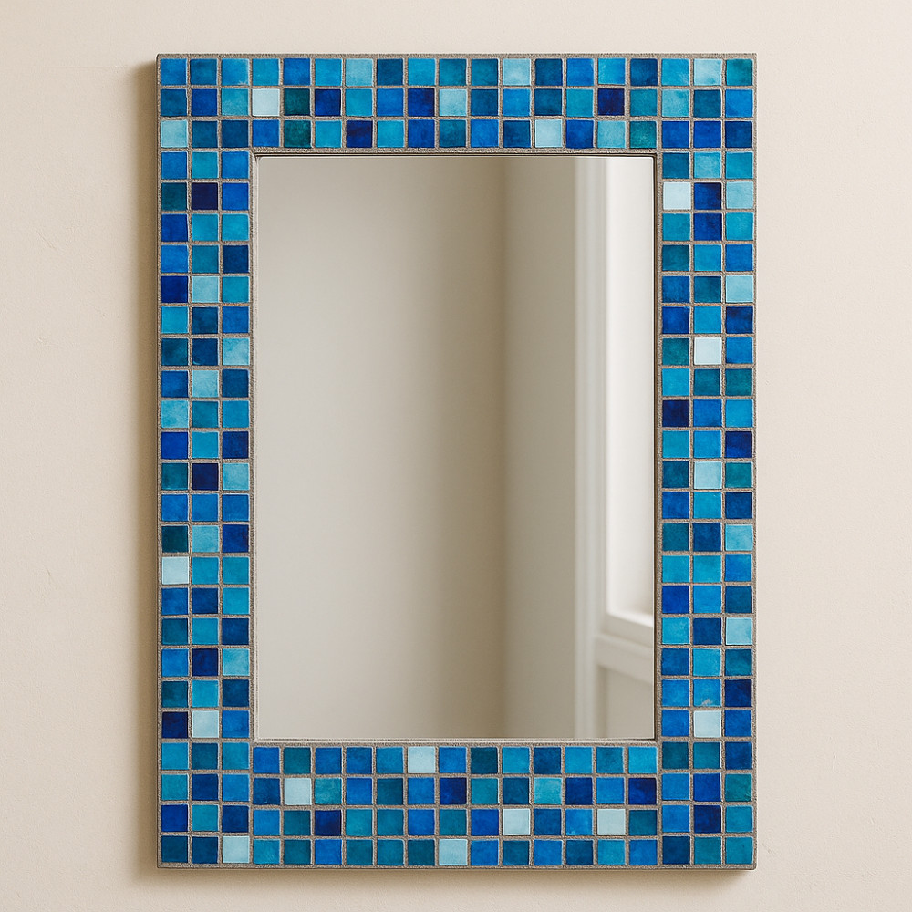 Элегантное зеркало в прямоугольной раме, облицованной декоративной стеклянной мозаикой Ингрид 003. Нежные переливы светло-голубых оттенков создают эффект воды и придают изделию лёгкость и воздушность. Мозаика выполнена из прочного закалённого стекла, устойчива к влаге и легко очищается, что делает зеркало универсальным решением как для жилых интерьеров, так и для ванных комнат или СПА-зон.
