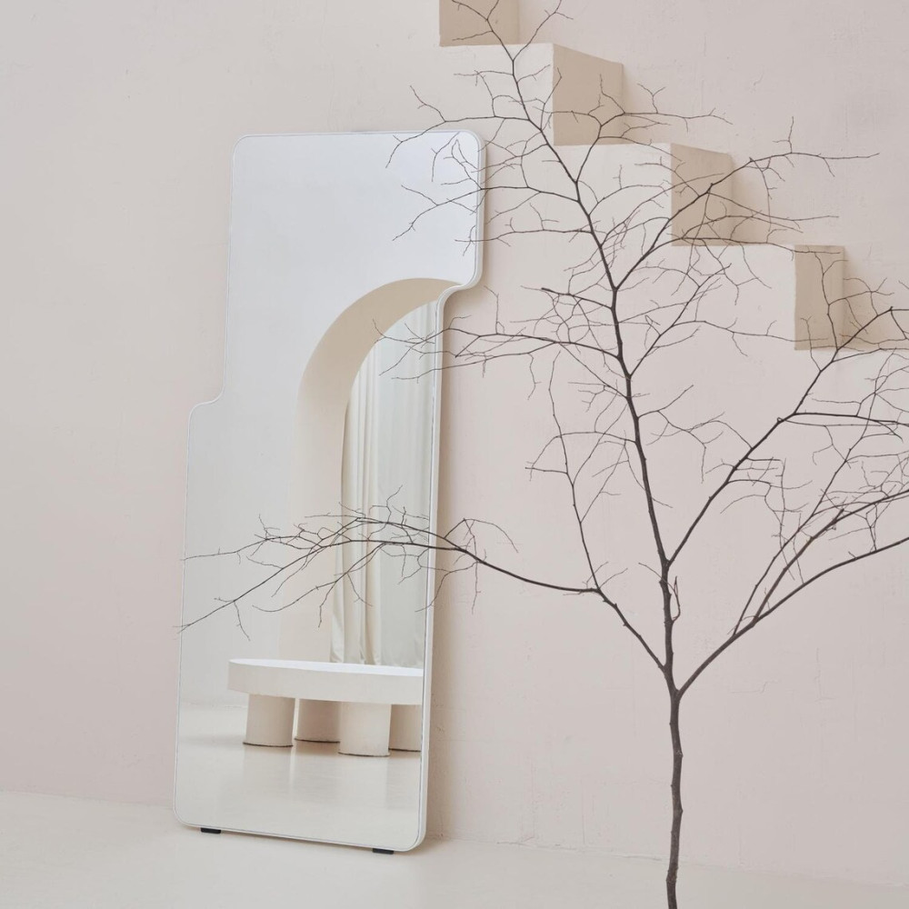 Большое асимметричное настенное и напольное зеркало в полный рост в раме из МДФ Тревор