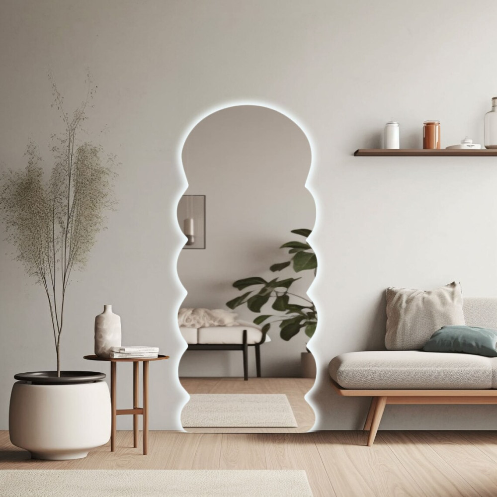 Большое зеркало волнистой формы в полный рост с задней интерьерной подсветкой E038