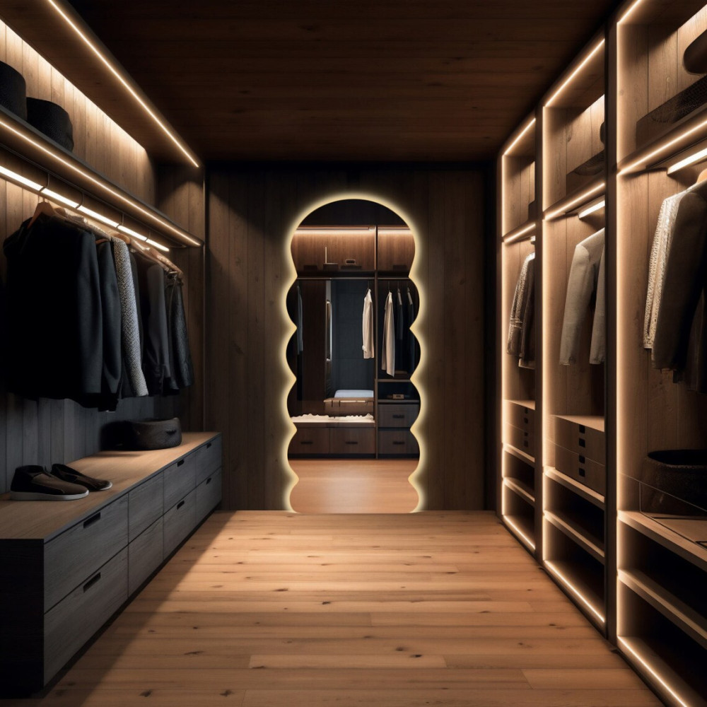 Зеркало волнистой формы настенное и напольное в полный рост с тыльной контурной подсветкой E038