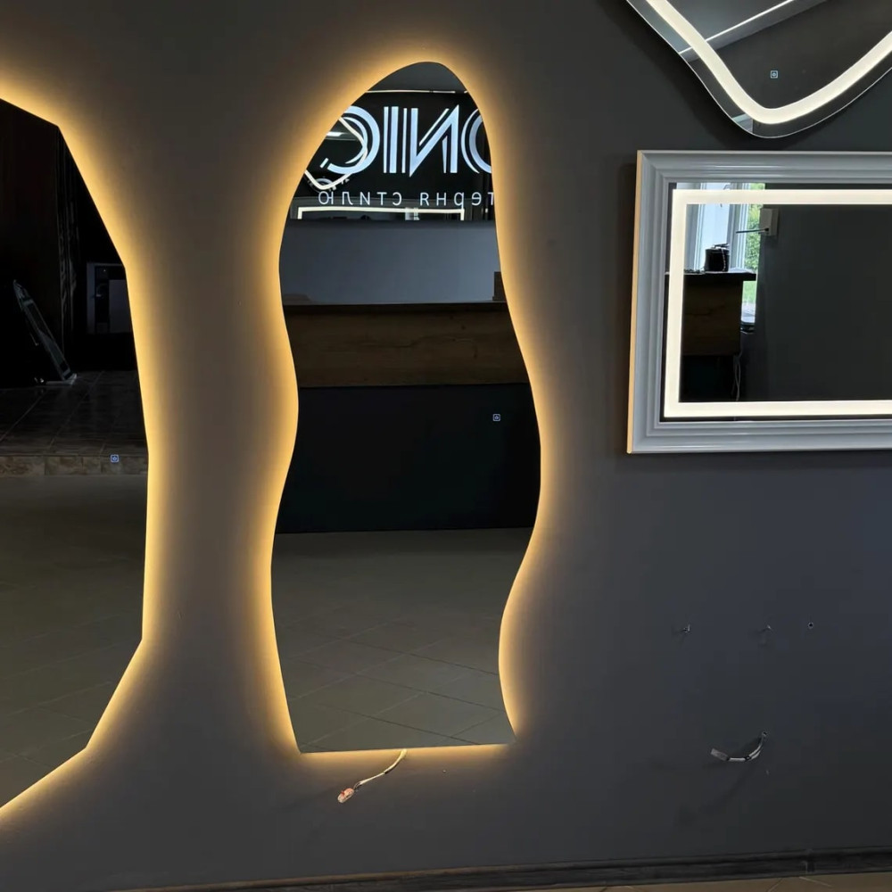 Зеркало волнистой формы в полный рост с парящей подсветкой E022